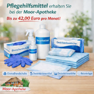 Diese Pflegehilfsmittel können Sie bequem in der Moor-Apotheke beziehen.