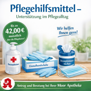 Diese Pflegehilfsmittel können Sie bequem in der Moor-Apotheke beziehen.
